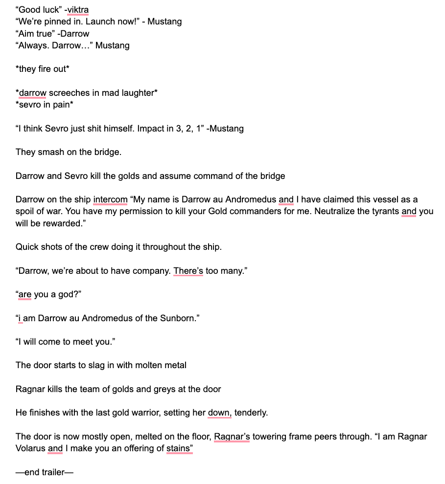 So this scene is them taking the bridge (scene 5) but the sub-scene is Sevro torching two golds.